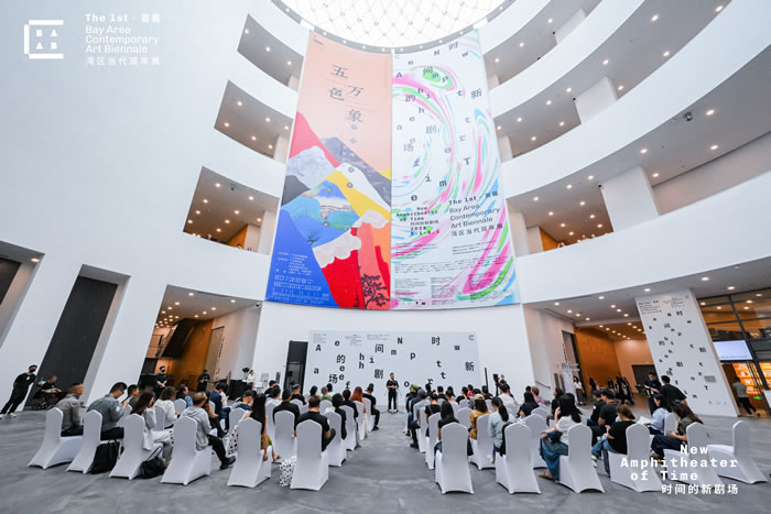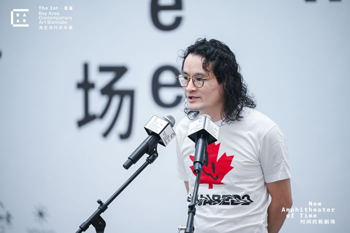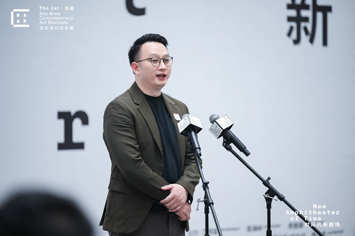 策展人郭赟将这次展览作为湾区当代艺术生态的切片和样本,让大家感受湾区生态的面貌及可能性,同时,展览启幕是以双年展的方式启动生态观察、文献梳理、策展实践以及理论探讨的开端,展览期间还将不断展开艺术现场表演、公共艺术沙龙、学术讲座以及文献出版等,多形式、多层次、多角度全方位地推动双年展成为全球当代艺术语境中的重要学术平台。回顾自己过去数年的策展实践,以“时间”为线索,深度参与到湾区艺术发展的进程中,并表示这次双年展是一个象征性的时间节点。