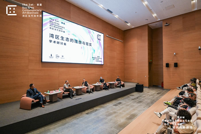 强大经济体上的超级城市、大型美术馆、国际双年展、顶级艺术博览会以及新兴艺术家群体构成了珠三角大湾区当代艺术的基本生态样貌。 下午4点,本次展览学术主持皮道坚、艺术家陈侗、林一林、澳门大学教授姚风、策展人郭赟进行了以“湾区生态的理想与现实”为主题的学术论坛。