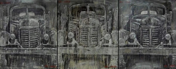 《解放车》张键,布面油画,150×390cm,2010年(银川美术馆藏)