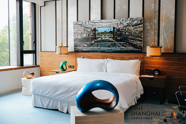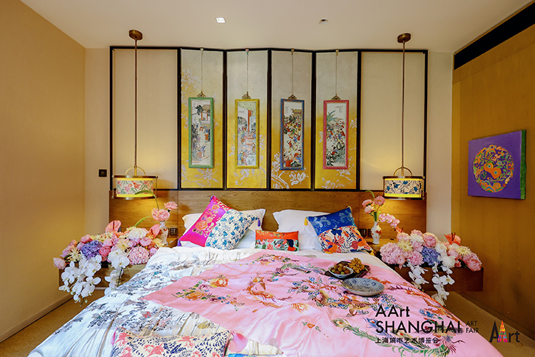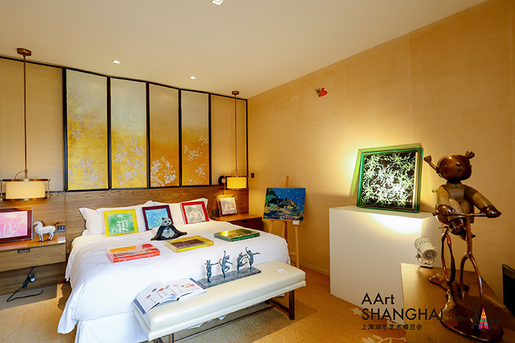 上海城市艺术博览会艺术总监韩琼在开幕致辞中如此阐释本届博览会的主题“你的客房美术馆”:“AArt博览会的展陈空间是模拟家的情境,我们每个人其实都是自己生活的策展人,我们为自己挑选的一桌一椅,日常吃穿用度,都是个人阅历与审美的外化。博览会中每一间客房中的展陈,都希望为观众呈现一个充满审美愉悦的生活场景,从绘画雕塑到版画、首饰,我们希望每个人都能从AArt带艺术回家。”