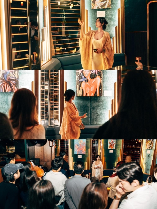 来自世界各地的,包括但不限于新加坡、上海、深圳、香港的艺术收藏者来到香港观赏Joya的画作,Joya为嘉宾们一一讲解她的灵感创作之路。其中不乏各行各业的精英佼佼者,来自金融、艺术、时装、珠宝等不同行业的藏家。