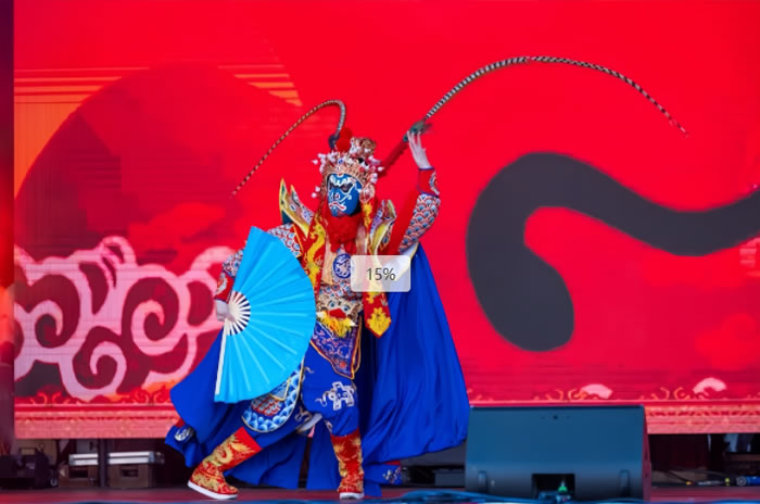 当变脸的鼓点响起,青年艺术家以雷霆骤变之势撕开脸谱——蓝面蛟龙、金甲战神、素面真容层层递现,“一秒三变、抓脸、回脸”等绝技震撼全场,掀起山呼海啸般的欢呼。当最后一层脸谱在欢呼声中褪去,露出真容的瞬间,姚则浩的眼底泛起灼热的泪光——这不仅是聚光灯的温度,更是文化共鸣从心底升腾的滚烫。演出筹备的过程中,他反复克服行头材质与运输难题,根据异国气候调整表演细节;筹备过程一波三折,直到演出结束,观众们簇拥着触摸道具,在指尖温度中完成艺术共鸣。