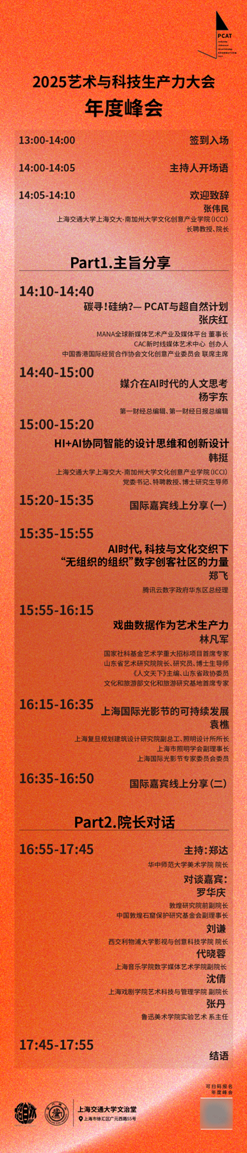 本次年度峰会,我们将邀请到艺术家、创作者、学者及文商旅的专家们,共同探讨艺术与科技如何重构内容生产逻辑?人类如何在人机协同中重新定位价值?……