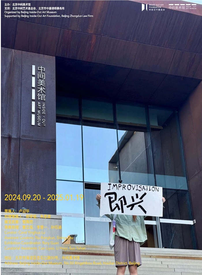 《即兴》海报,展览呈现了从上世纪八九十年代开始的行动和表演,及当下和实践,探讨即兴在生活和艺术中的重要性。