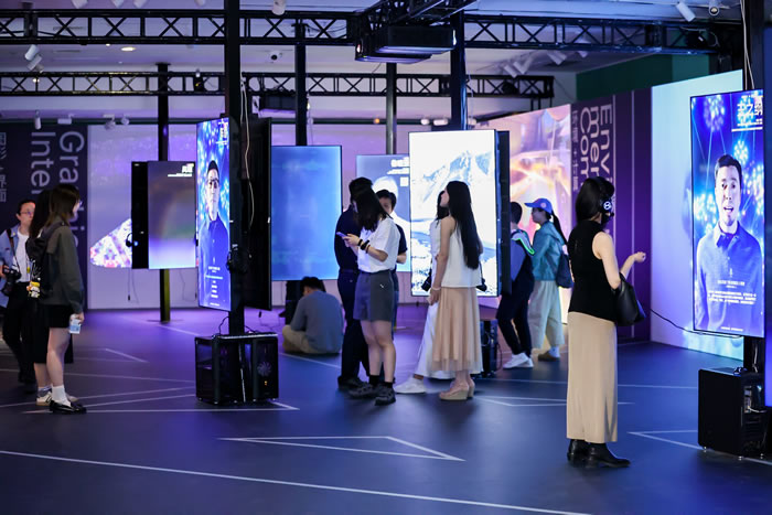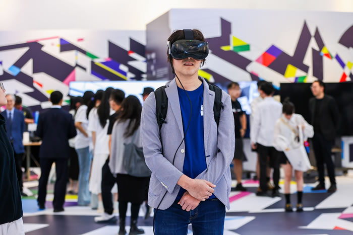 “未来语法的无限演绎”展区利用VR技术打破虚拟与现实的界限,其虚实交错的空间设计为观众带来不一样的沉浸式体验,观众可以跟随虚拟现实独特的视角,感受数字技术与艺术相融合的叙事魅力。