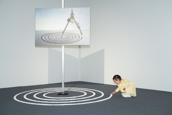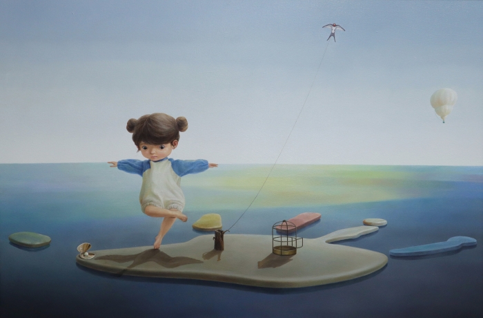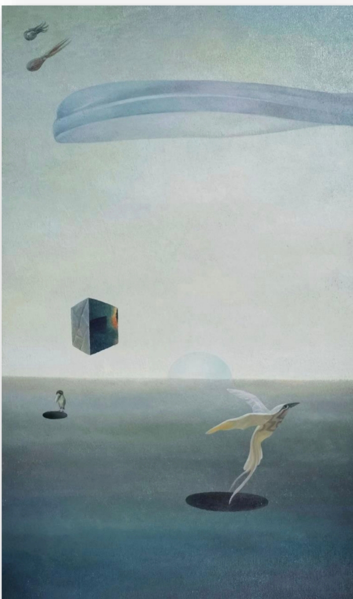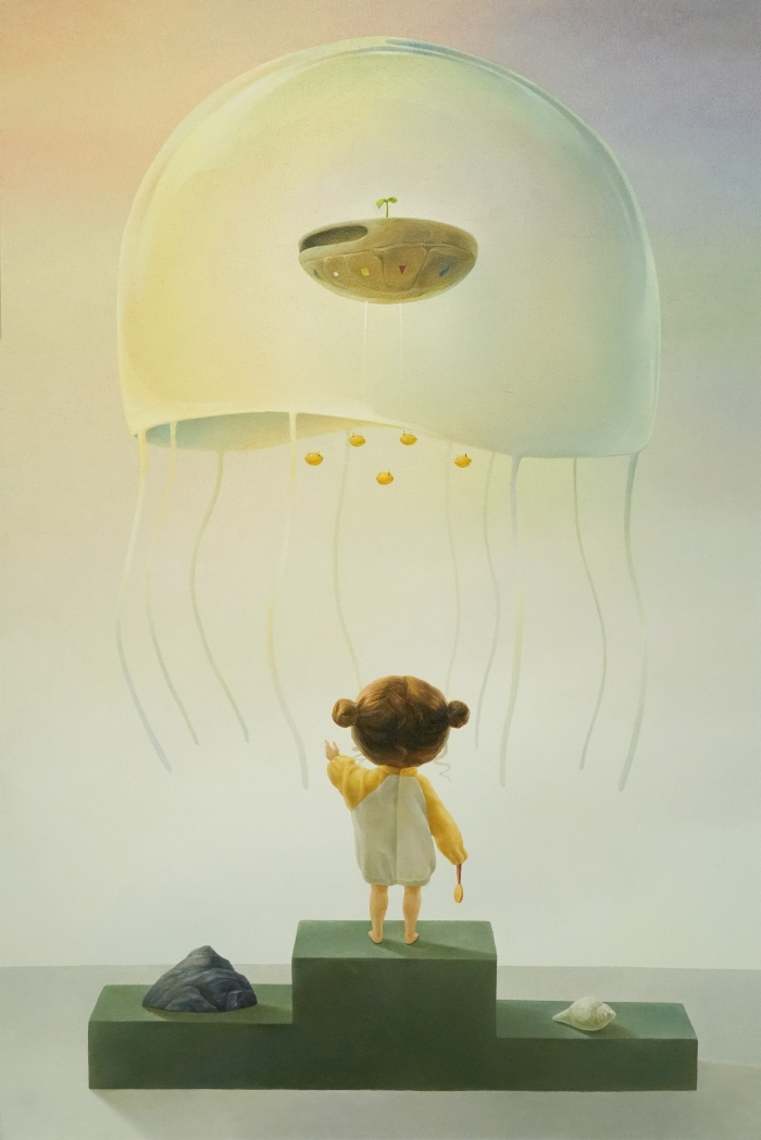 张永飞的作品还带有超现实的元素,他倾向于通过符号的转化来传达情感,以克制而内敛的方式,将内心深处的想法诉诸画布。这份情感蔓延至画布之外,流淌着对家人的温暖守护,对友人的真挚关怀以及对万物本质的深沉思索。稍显小巧的作品却展露出他在方寸间容纳天地和蓬勃生命力的真挚意愿。