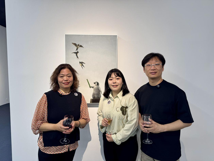 右起:艺术家张永飞、策展人陈雅琪、出品人王海英