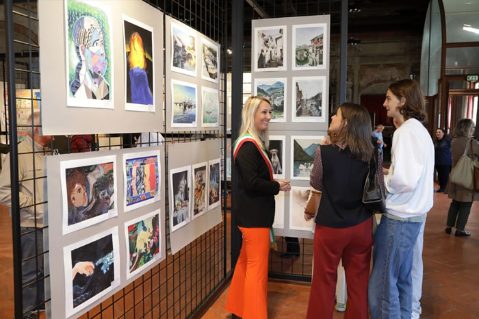 本届大赛以“未来”为主题,吸引了全球十余个国家的青少年参与,展现了全球化背景下青少年对艺术与文化交流的独特理解。特雷维索市教育部部长Gloria Sernagiotto在开幕式上表示:“我们非常高兴主办这一活动,学校每年都以极大热情参与,足见其影响力与价值。希望大赛持续发展,激励更多青少年展现才华。”她强调,艺术不仅是学科,更是孩子们表达思想的途径,培养他们成为创意思想家与文化大使。展览中,来自莫塔·迪·利文扎高等康复医院的患病儿童作品格外引人注目。他们的画作与其他青少年创作一同展出,传递出希望与团结。一幅由多位孩子协作的壁画色彩斑斓,令人动容。医院艺术协会代表Barbara Turcolin分享:“首次参与这一国际活动,我们为学生作品的展示感到骄傲。这不仅关注了疾病经历,也为孩子们提供了表达自我的机会。希望这是未来合作的起点。”这些作品彰显了艺术的疗愈力与包容性,为住院儿童带来情感慰藉,也呼吁社会关爱特殊群体。