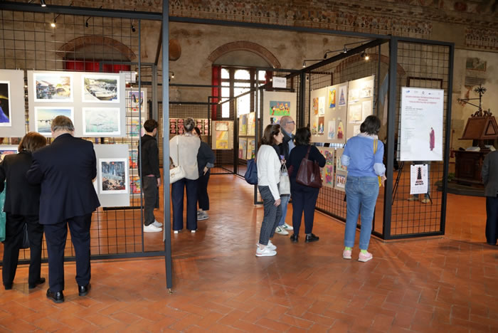 开幕式现场,特雷维索市教育部部长Gloria Sernagiotto、特雷维索学会主席Antonietta Pastore-Stocchi、特雷维索地区中小学校长代表Luana Scarfi、莫塔高等康复医院艺术协会代表Barbara Turcolin,以及来自中国的盛鑫煜艺术机构代表杨颜瞳等嘉宾共同出席。现场展出的近600幅作品中,约300幅来自中国、美国、新加坡、澳大利亚等国家的青少年,其余作品由意大利多所中小学校学生创作。