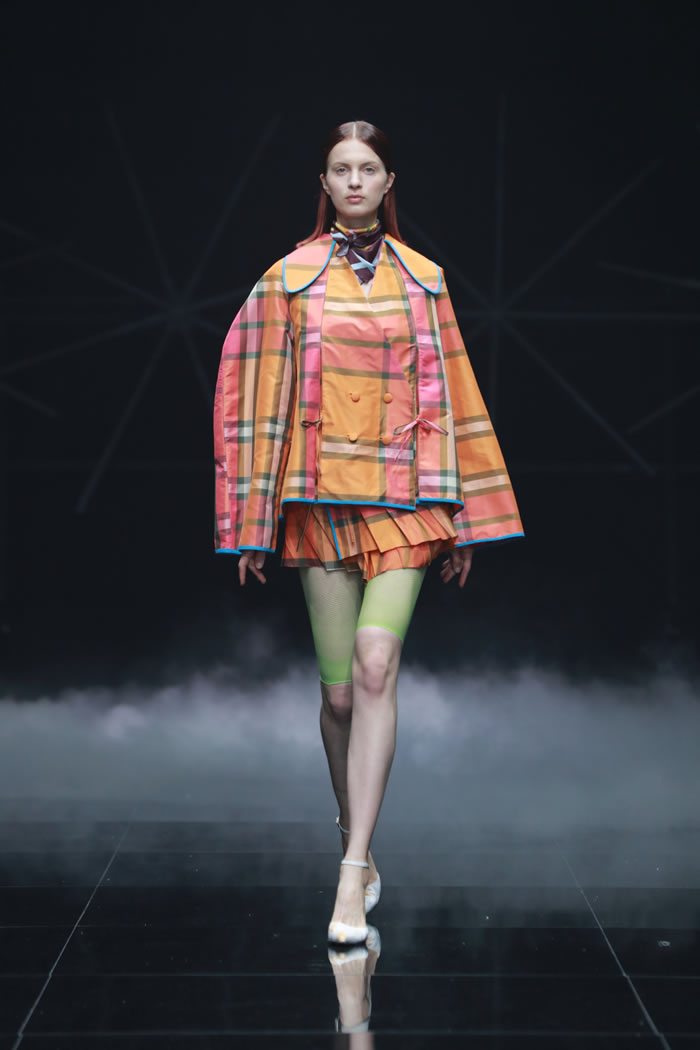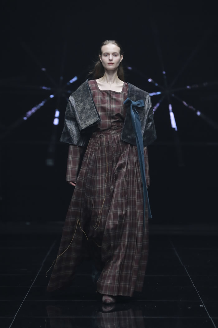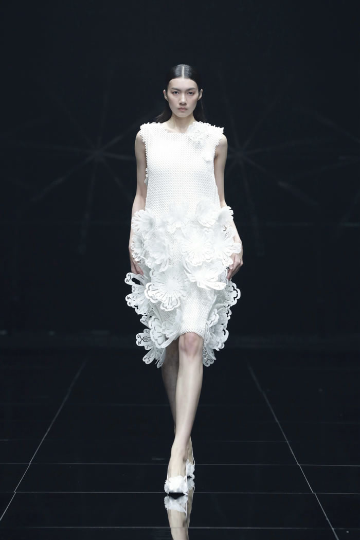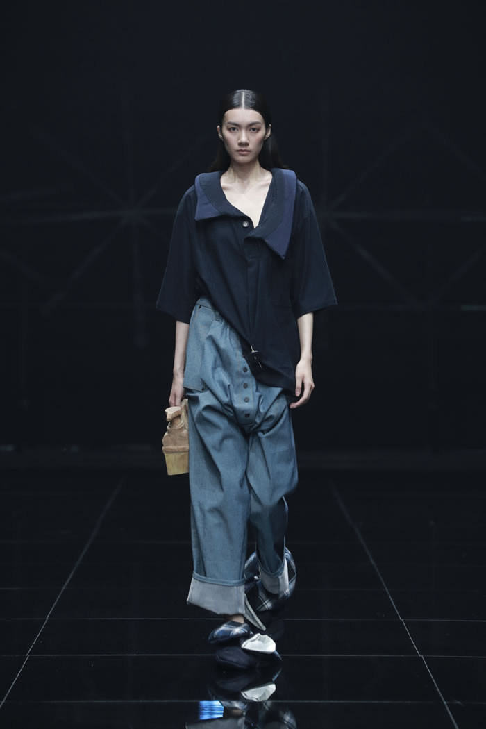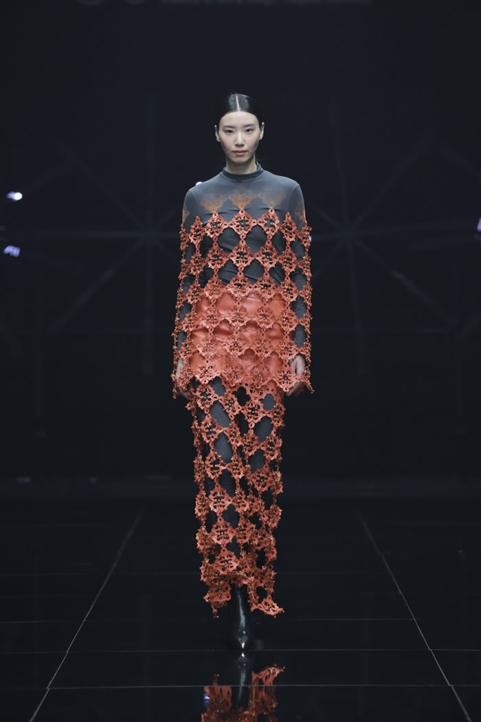 在“重叠”的主题之下,同学们在材料选择与造型语言上大胆尝试,尝试建构一个融合传统与未来、现实与幻想、身体与精神的多维时尚世界。通过对文化、技术、生态与身份等议题的深入回应,彰显了新一代设计师以衣为媒,跨越边界、重构叙事的创作理念。一件件作品在舞台中交相辉映,给观众呈现一场精彩的视觉盛宴。