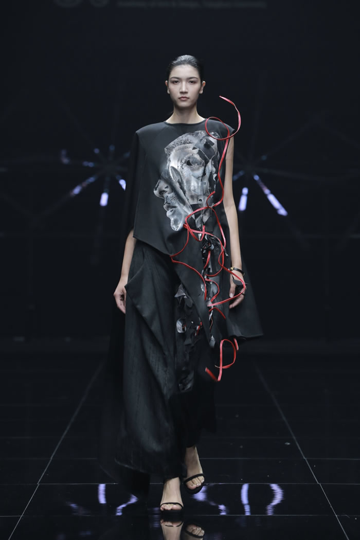 本届发布会以“重叠”为主题,探讨多重价值观、材料语言、文化维度和设计思潮之间的重叠交融。发布会现场展演清华大学美术学院染织与服装艺术设计系本科与硕士研究生作品60套,意大利NABA新美术学院学生作品12套,这些作品展现出对传统文化、可持续时尚、艺术与科技等多个角度的理解思考,为观众带来一场充满实验性与艺术性的时尚盛宴,共生焕彩。
