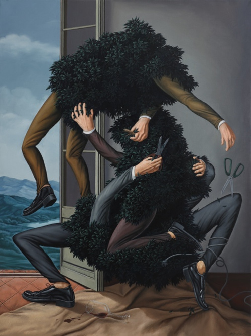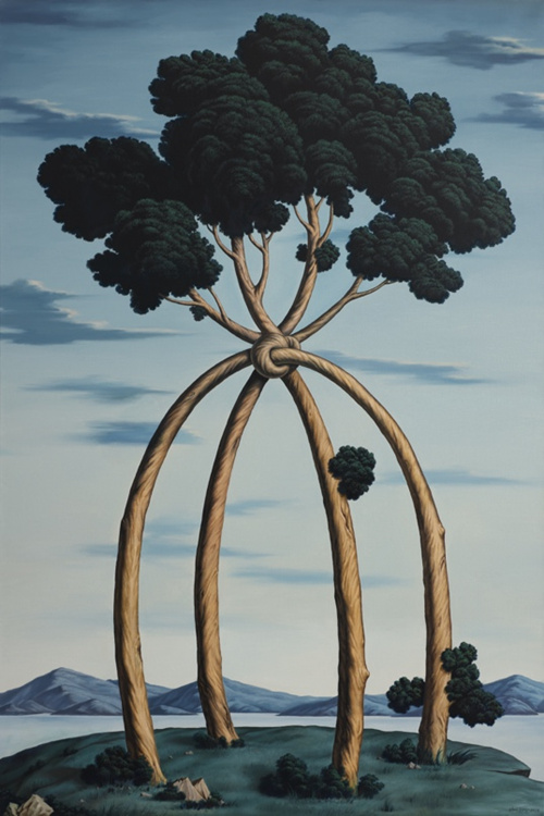 周松,中国当代艺术家,现工作生活于中国。其创作跨越具象与观念边界,以绘画语言探讨自然、身体与社会秩序之间的结构性关系,融合写实技法与符号重构,逐渐形成具有辨识度的图像风格。近年来,他聚焦于“超自然”概念,借助东方哲学视角回应技术时代中人类精神状态的复杂处境,通过“树”“人”“日常”等元素的交错与重组,构建出一种悖论式的图景,引发观众对当代生存经验的思考。