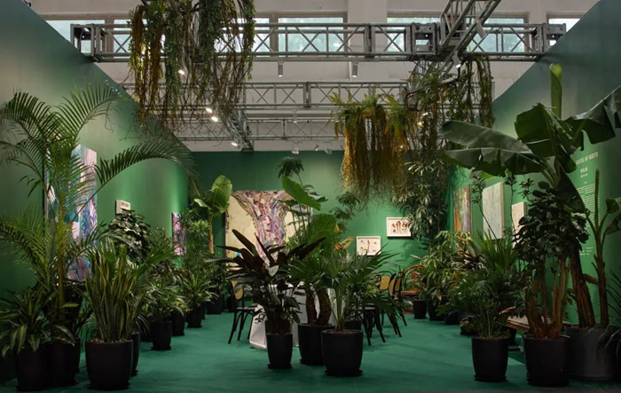此外,19个“特别艺术项目”同样亮点纷呈。演员朱珠作为本届北京当代艺博会的“艺术主语人”,策划的项目“欢乐之家”(House of Mirth)通过绘画、装置、雕塑和热带植物,将十年前在仰光的跨年体验重现于艺博会现场,邀请观众在这个记忆空间中重新唤起各种充满生命力的情绪。朱珠希望“艺术能成为 5月人们诉说北京的主语,在北京当代感受世界艺术,共享北京时间”,而“欢乐之家”无疑为这一愿景增添了浓墨重彩的一笔。