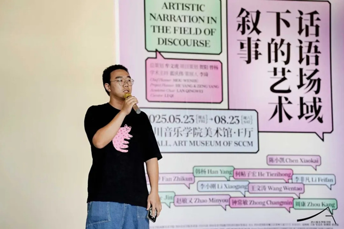 “话语场域下的艺术叙事”展览开幕,由四川音乐学院美术馆学术部杨然副教授主持。川音美术学院党委书记贺阳教授,在开幕致辞中表示:“在本次展览中,青年策展人与艺术家为活跃的艺术现场注入了朝气与活力,希望年轻人们能继往开来,四川音乐学院美术馆也将会通过例如青年策展人计划的机制做出有力扶持”。展览学术主持蓝庆伟说:“川音美术馆青年策展人计划为艺术管理、艺术史与理论专业带来了福音,该平台也为培养未来优秀的青年策展人与艺术家做出了极大贡献”。策展人李琦谈到:“当下社会发展使得每一个人都可以是话语的发起者,本次展览的艺术家们通过作品回应了不同的议题,也感谢美术馆为我们提供了一个发声的重要平台。”艺术家代表何帖子宏认为:“作为年轻艺术家很荣幸能够在美术馆展示自己的作品,希望大家能看到我们在作品中对于时代的个人回应,发