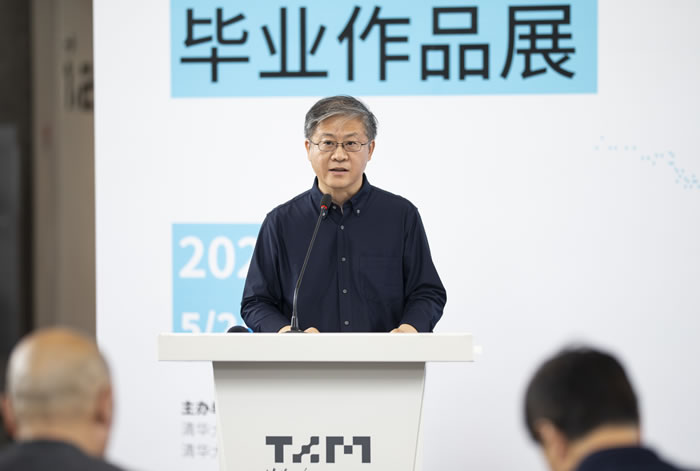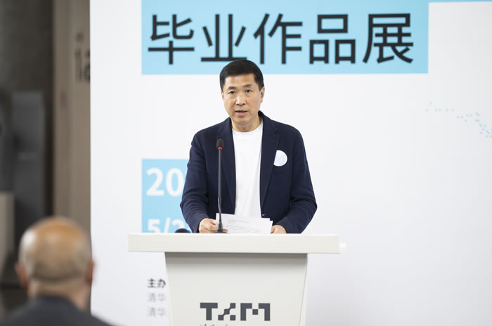开幕式上,清华大学美术学院院长马赛致开幕辞。他充分肯定了毕业生们的表现,赞扬他们在作品中融合传统智慧与当代表达,体现出对现实问题的深入思考与艺术回应。马赛同时强调,这些成果印证了学院“中西融汇、古今贯通、艺科融合”的教育理念,并寄语毕业生们以人文定力守护创作初心,用中国美学智慧解答时代命题,让清华美院精神在更广阔天地绽放。