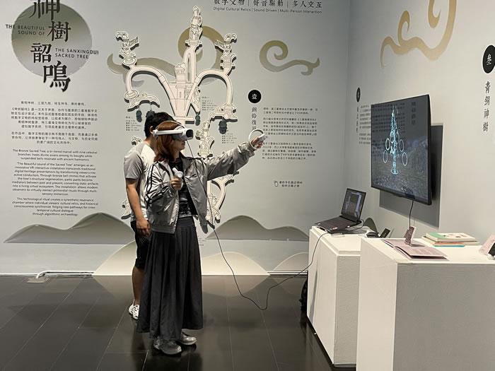 他们在艺术与科技、传统与现代之间搭建起沟通的桥梁。展览作品体现出鲜明的当代性与实验精神,融合材料探索、观念表达与设计美学。传统文化元素经数字化解构焕发新生,敦煌纹样、非遗工艺与现代设计语言深度融合,三维造型语言在实体与感知之间深度对话。此外,展览作品还聚焦未来太空场景,以软硬件创新为媒介,展现艺术与科学碰撞的魅力。