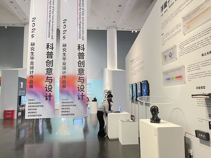 据悉,展览汇集了美术学院170余位毕业研究生的最新创作,全面呈现“艺科融合”背景下的丰硕成果。从器物设计到数字艺术,从空间营造到视觉叙事,每一件作品都凝结着青年学子们对社会议题的敏锐观察、对生活温度的细腻捕捉,以及对未来图景的美好擘画。