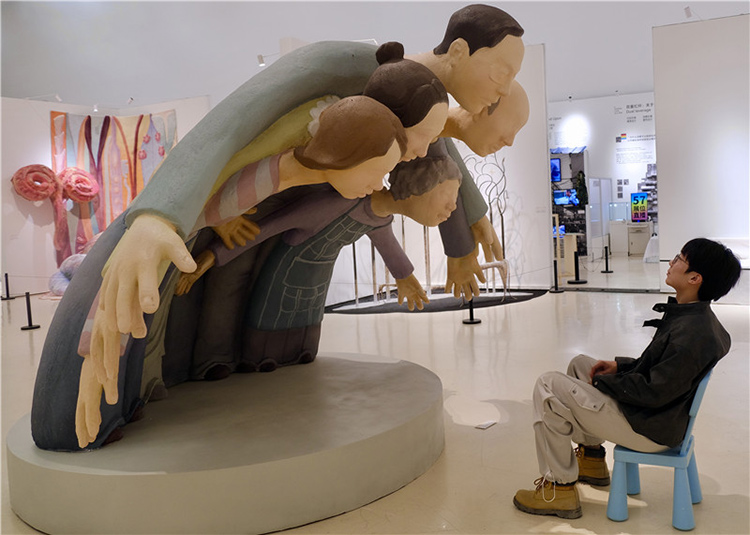 毕业展现场观众与作品互动