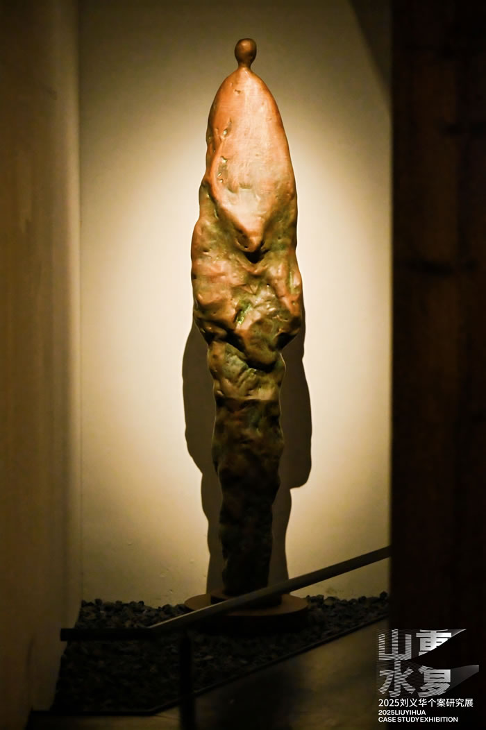 此次展览,策展人从东南历史文脉出发,强调东南艺术和中国当代艺术现场一以贯之的立场与坚守,既在地性、民间性、野生性,并提出艺术家在当下社会文化语境中应当秉持的自明与自省,才能保持人格的独立和创作的自由。她指出,展览以福建多元共生的文化土壤为底色,按时序及创作风格流变,梳理并呈现艺术家《行者》、《峋影》、《凝行》三组雕塑系列,它们是个体成长史、心灵史、知识史在视觉语言上的生动表达与鲜活转换,具有地域血脉所具有的张力、活力与生命力。刘义华以“匍匐潜行”的实践,融合在地经验与现代形式探索,其雕塑语言既具泥土的厚重感,又有水墨的灵动性。三组作品折射出艺术家扎根东方文化精神深处,同时汲取西方现代性学养,以个体的视觉实践汇聚成中国当代艺术创作中的“微观个案”。