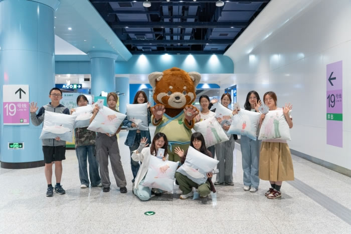 12号线的钢铁巨龙驶入青年腹地人民大学站、北太平庄站,这两处串联海淀高校带的站点,毗邻人大、北师大等学府。5月25日活动现场,憨态可掬的小熊猫人偶为年轻朋友们送上一个“抱抱”,以动物的柔软触感为引,用包容的拥抱动作,传递 “你并不孤单” 的情感慰藉。同时关注并扫描画作二维码,将有机会获得北京野生动物园门票。
