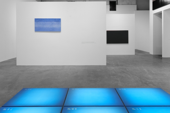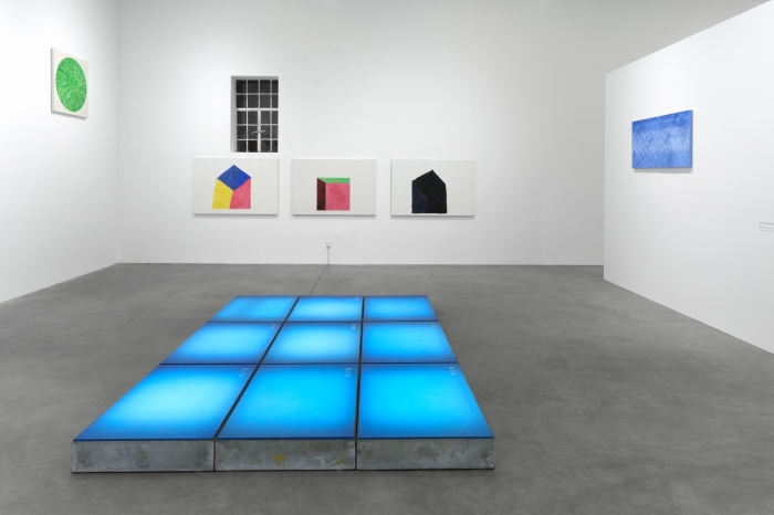 其中比较难忘的是,香格纳画廊的艺术总监施勇老师特地在原本封闭的墙上打开了一扇窗,这扇窗为展览所引入的一篇真实的天空,与展厅地面上的一件关于天空的灯箱作品,以及墙面上一幅天空的抽象画,构成了一个诗意的空间。