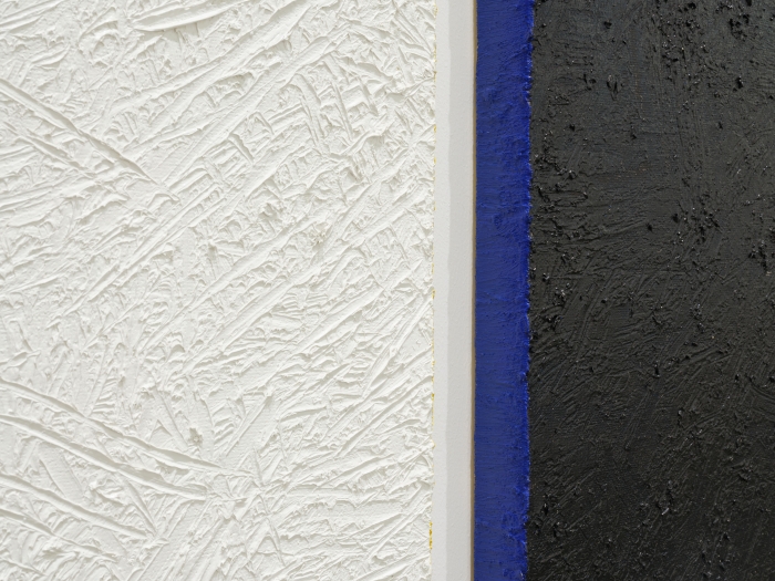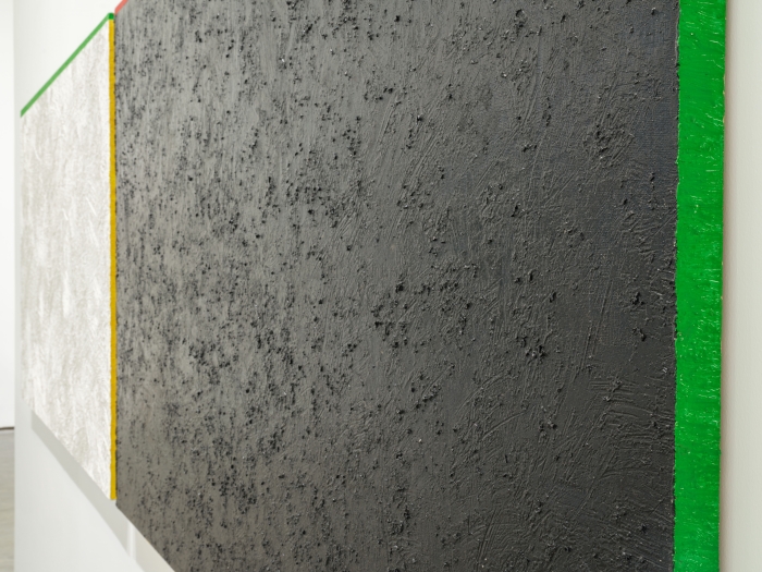 这一时期,他对黄宾虹的研究是一个重要的节点。如本次展览中的《水平线》,由一整块的黑与一整块的白两块画布组成;凑近看,会发现每一笔都在动、都不重复;以及更有心的话会发现画布边缘的高饱和度鲜明色彩是互相呼应的。这无疑让人想到90年代申凡创作的《98-P-25》《96-P-170》等系列。值得注意的是,如此“一团墨黑”的视觉效果也是致敬黄宾虹;黄宾虹晚年的“黑画”曾为人所诟病,但恰恰这些“一团黑”的作品奠定了其作为20世纪中国画现代化的先驱地位。黄宾虹到了晚年,大胆突破所谓“物象”的束缚,也摒弃了他自己前半生所致力山水写生、敬习古人的努力,开始追求内心的造化以及强烈的情绪表达,也即从“物象”转移至“心象”;气象万千,皆源于用心。所以,黄宾虹做到了一种尊崇内心真实情感而在画面表现上又非常简洁有力的视觉语言。在骨子里,黄宾虹实则将中国绘画大大往前跨了很重要的一步。他接续明代文人画的精神,在“无人之境”上走得更为深远——从古人“拟物移情”的“无我”到黄宾虹的“从心而发”的“无我”——此二者在本质上不同,黄宾虹的“无我”更具有艺术家的主体意识;这种主体意识依托于敢于突破陈规的实验性精神,更是深厚学养和博学视野所催生的自信与智慧。我想,当申凡说“我没有我”的时候,必然也是知晓此中之真意。