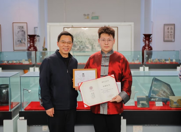 在开幕式上,北方工业大学正式收藏王元作品《青春多招展,成熟更自谦》,并由校纪委书记段辉建颁发收藏证书。