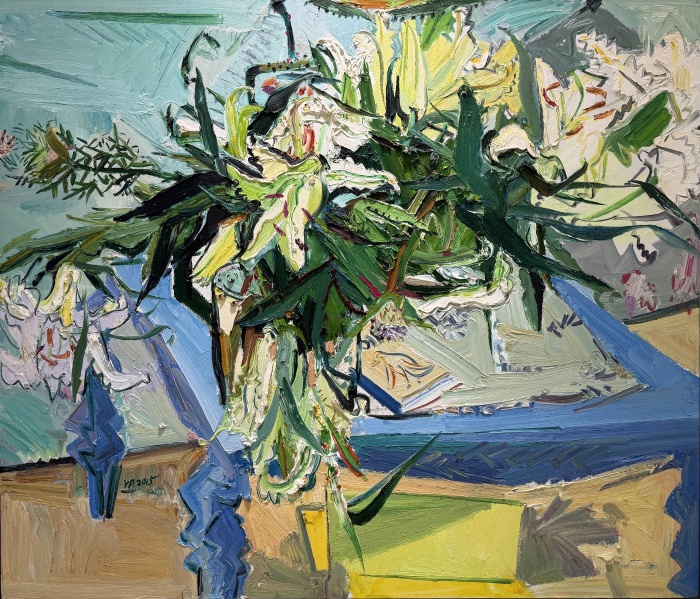 闫平 桌面上的百合花 140.5×120cm(含画框:163×143cm)布面油彩 2015年