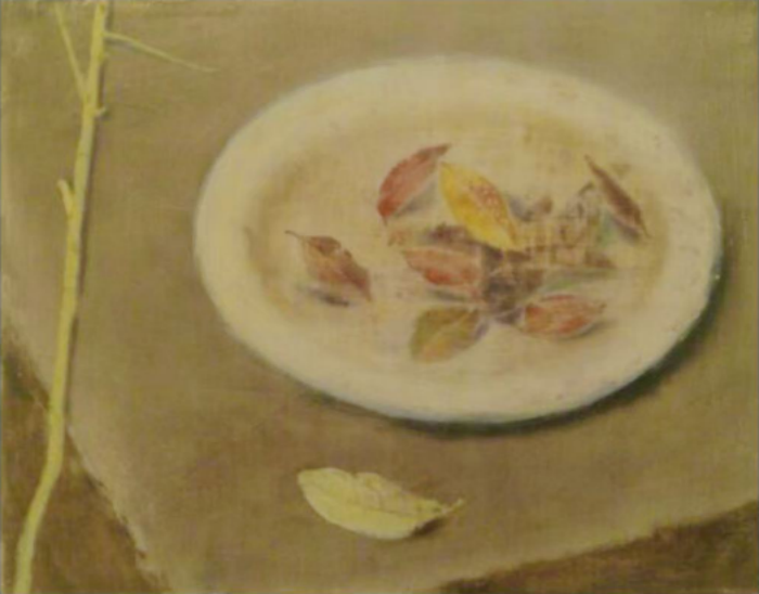 夏禹 盘子和树叶 40×50 cm 木板坦培拉 2012年