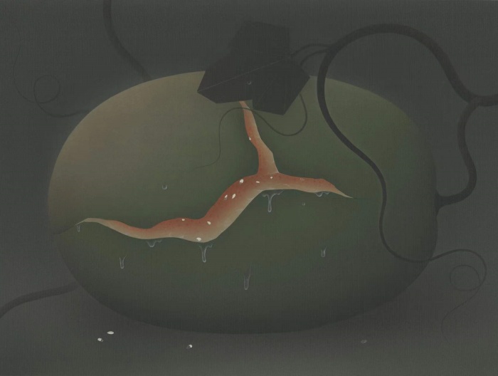 随着时代的变迁,静物的含义和表达方式正在不断延展。曾志钦的作品多笼罩在黑色背景中,几何化的造型颇具形而上气质,裂开的瓜预示着过度成熟、碰撞、迭代、紧张。李易纹用冷峻的眼光描绘日常一瞥捕捉到的事物,它们看似微不足道,却总是在庸碌的生活中激起涟漪。