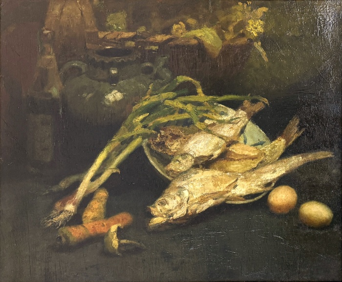 尚扬大学的第一张作业厚重深沉,像是在画一场关于静物的仪式。这张画里的鱼干、鸡蛋在当时都是相当珍贵的,能感觉到画家作画时的义无反顾,像是把千钧之力注入其中,每一处细节、虚实都处理得相当用心,无可挑剔。