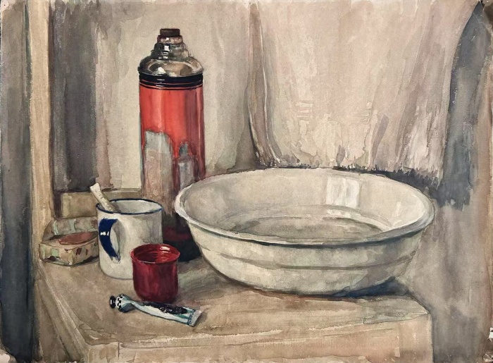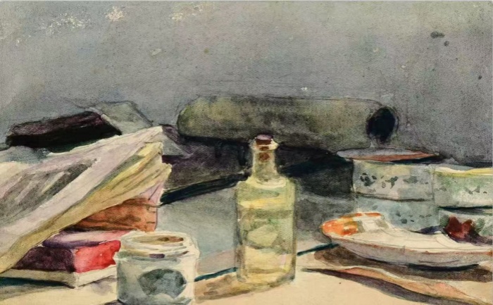 戴泽 中央大学的课桌上 12×18cm 纸本水彩 1944年