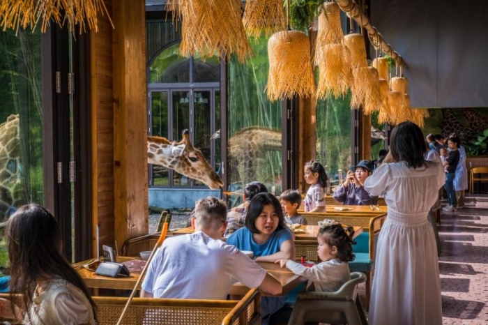 建筑不再是人类中心主义的宣言,而是化身为谦卑的自然观察站:普洱小熊猫庄园的木屋露台成为野生动物社交的过渡空间,湖州长颈鹿庄园的落地窗则构成了一道温柔的自然相框。晨光中,小熊猫造访时不慌不忙的姿态,长颈鹿享用树叶时优雅的弧度,都在诉说着同一个生态智慧——真正的亲近,始于对自然的敬意。