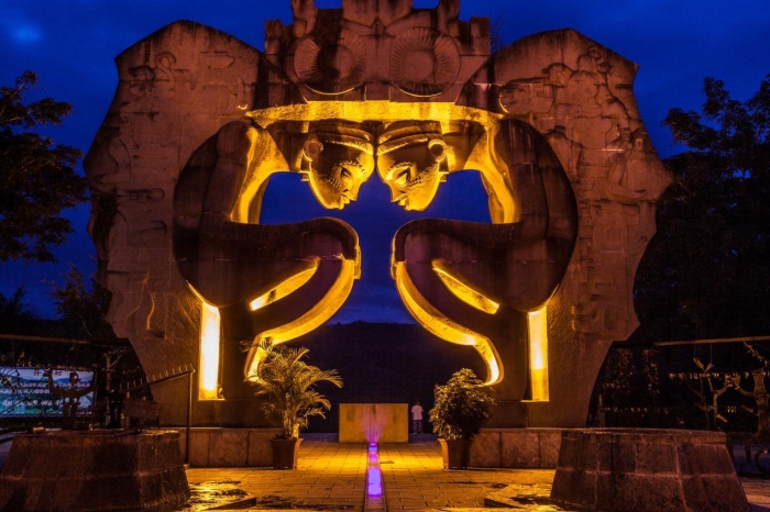 当夏至的晨光如一支金笔,精准勾勒墨江北回归线标志园的石刻纹路,“哈尼族祭司”手中的燧木开始与太阳进行古老的对话。身着靛蓝服饰的族人如蓝色的波浪,环绕着取火台,古老的歌谣如同灵动的晨雾,在天地间缓缓升腾——这不是简单的时空切片,而是一个民族与自然订立的永恒契约,是用千年时光书写在大地上的绿色情书。那簇跳跃的火苗,恰似自然的使者,轻声诉说着:现代人苦苦探寻的可持续发展密码,早已蕴藏在祖先与自然和谐共处的智慧之中——以最虔诚的态度索取所需,以最温柔的方式回馈自然。