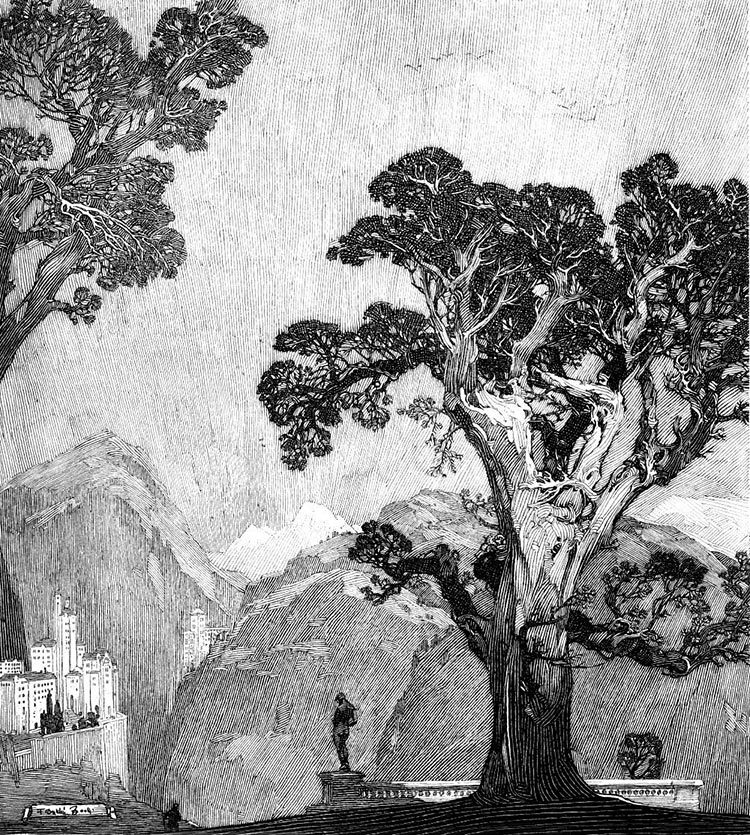 Franklin Booth,Tree And Mountains,图片来源:outsidelogic