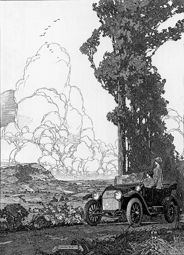 Franklin Booth,Landscape With Car,图片来源:outsidelogic