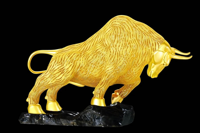 LOT 1204 郭夷锬 气势如虹——花丝生肖牛摆件 银镀金,260 x 80 x 140 mm 重 360.43 g 2020