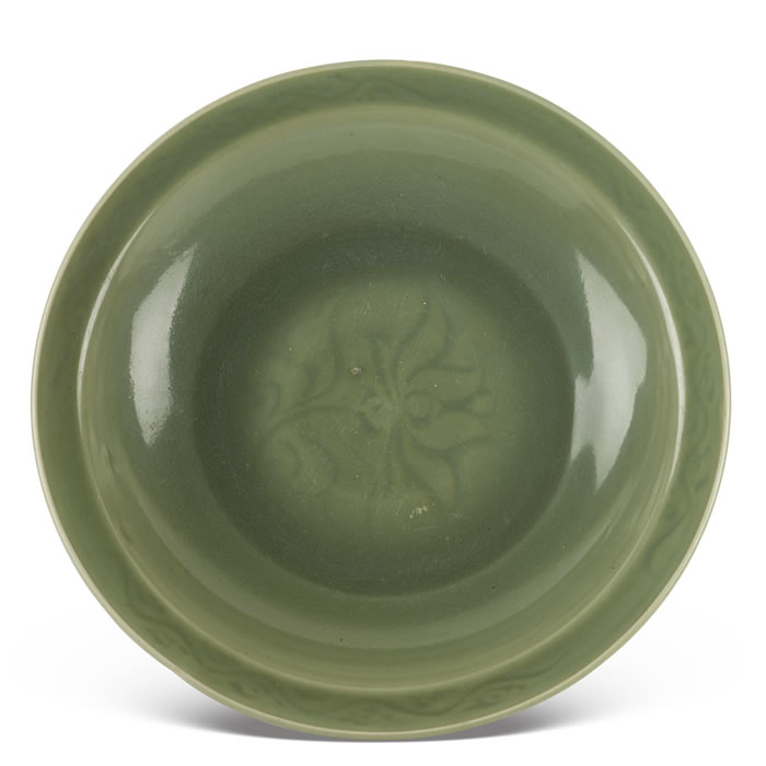 LOT 1523 明 龙泉窑青釉刻花大盘