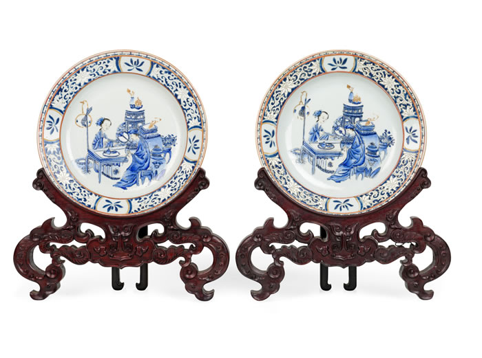 参阅:纽约佳士得2023年亚洲艺术周Lot1084, 清雍正 蓝彩文人仕女图盘,成交价100,000RMB(单只)