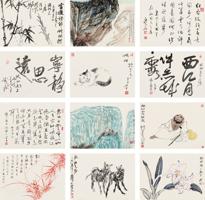 LOT 17 启功、黄胄、关山月等 五桂山房集册 设色纸本册页 44 × 61.5 cm x 12
