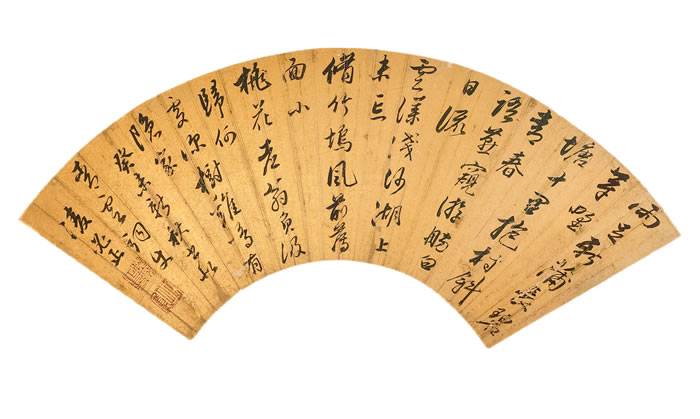 LOT 279 凌必正 行书文征明《郭西闲泛》诗 水墨金笺扇面 16 × 48.2 cm