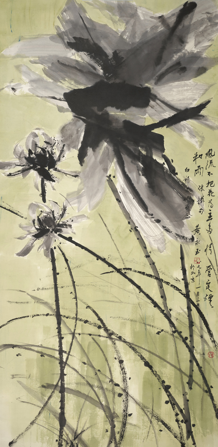 LOT 207 黄永玉 荷花 设色纸本镜心 198 × 96.5 cm