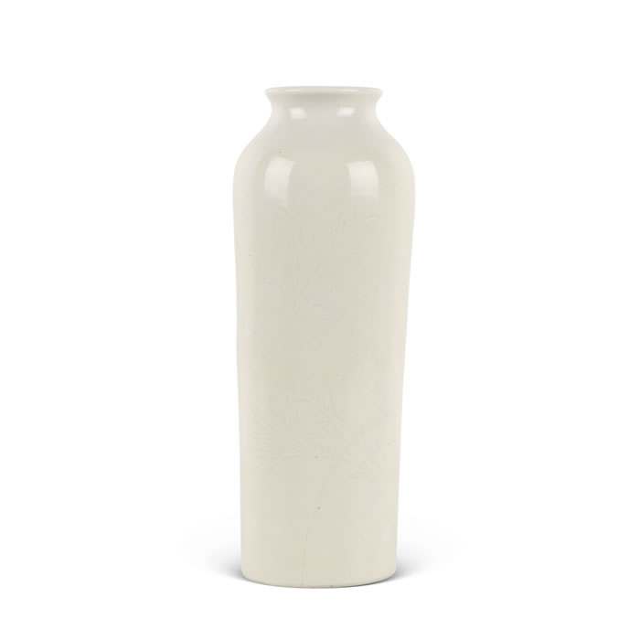 LOT 1562 明末清初 德化窑白釉暗刻花纹筒瓶