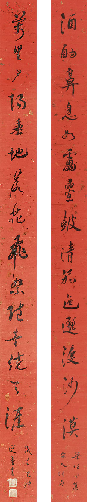 LOT 239 饶宗颐 行书十五言联 水墨纸本镜心 137.5 × 10 cm x 2