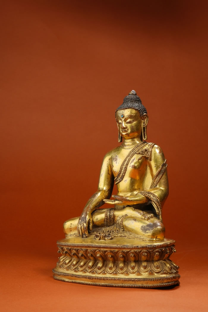 LOT 650 藏地尼泊尔风格阿閦佛 铜鎏金 14世纪