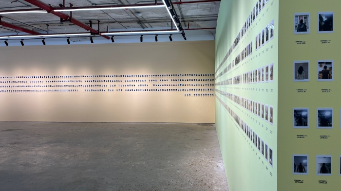 《礼物》项目中那部记录四年多创作过程的纪录片,没有对白,也没有字幕,只是平淡的展示生命自我的确证,平淡是大部分人的日常,这种日常化记录亦是对于时间变化的一次真实考据。然而值得深思的是,这部影片与其说是作品的附属品,不如说是作品本身的重要组成部分,艺术家用平淡记录平淡,用日常对抗日常,在艺术中却转化成不可说的语言。坚持近五年的每天一次拍照打卡,让人联想到谢德庆的一年的时间作品,同样是对于时间的生命的自我确证。解丁泉谈到谢德庆的作品时,用禅宗中“默照禅“做类比,身体的感悟需要身体去感悟,这其中的感悟正是不可言传的体悟。数千张打卡照片的连续展示创造了一种独特的时间密度,既记录了发丝的缓慢生长,也将漫长的四年多压缩为可感知的时间块。这种记录行为本身构成了法国哲学家亨利·柏格森所说的"绵延"体验——不是物理学家测量的一分一秒,而是人类意识中流动的、质性的时间感受。艺术家通过将自己转化为被记录的对象,实现了创作者与创作材料的双重身份合一,这种自我客体化的过程揭示了一切自传式艺术的根本悖论:要表达真实的自我,必须先将自己变成他者。