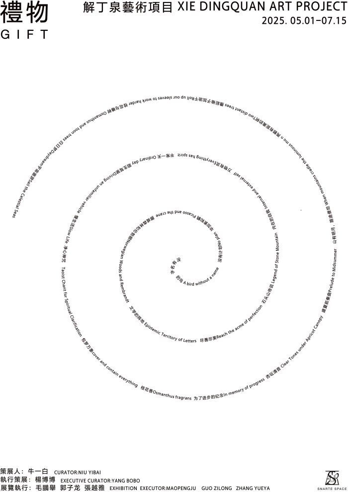 《礼物》最终呈现给我们的,是一幅关于人类存在状况的微妙图景:我们既是时间的囚徒(如扫地机器人般被不可逆的时间推动),又是时间的编织者(能够将自己的生命痕迹转化为有意义的形态)。解丁泉的这次展览试图告诉我们,或许对抗时间流逝的方式不是试图超越它,而是如他一般,将自己的身体感悟转化为享受时间的方式,将生命本身变成一部持续书写的自传。在这个意义上,《礼物》不仅是一位艺术家送给自己的礼物,更是送给所有观众的珍贵启示:如何在我们自己的生命长度内,找到物质与精神、时间与永恒之间的那条纤细而坚韧的发丝之路。