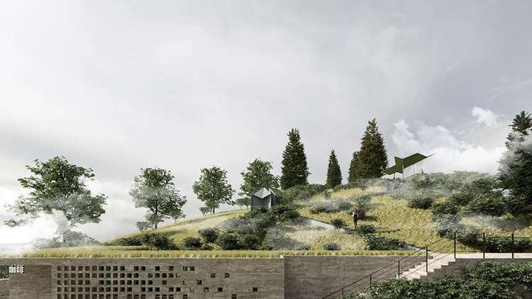 半山云海(半山云海驿站)是建筑师胡兴携手艺术家李怒打造的“东坡乐事”主题艺术场景,共赴一段人、山、云共生的“云海疗愈”诗意旅程。山脚设有“山行驿”,以台地式结构串联咖啡区与登山步道,是补给起点亦是观云首站;中段设“吾乡亭”,融合宋代建筑风格,以艺术化语言传达对传统人文的致敬与情感归属;山顶处为“卧云榭”,轻钢折板模拟云层涌动,反光材质与天光交汇,亭体隐入云端,营造出登高望远、身入云海的沉浸感。整个路径顺应地形高差展开, “最小干预”嵌入自然,以云势为序,串联山形与文脉,使每一次登高都成为一次与自然对话、与心灵和解的疗愈之行。