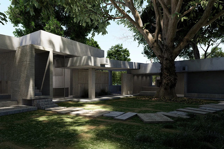 从这一场景出发展开想象,午倦宫为每一个睡意来袭的现代人提供了一个可以安置午后倦意的精神场所:憩于树下,眠于石上。午倦宫在多棵百年大树所构成的荫蔽之下,犹如由巨石所构成的远古遗迹,将午后的倦意带回人类本能意识中安全的憩居地,为睡意找寻一处安心之所。