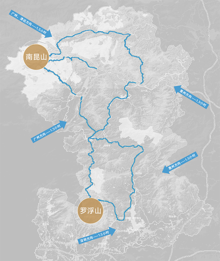 南昆山与罗浮山,这两座森林覆盖率超92%、藏有78处温泉眼与200余处文化遗迹的生态双子星,横亘于粤港澳大湾区的文化腹地。在它们之间,一条全长218公里的“最美旅游公路”联通两山,呈“8字环状”。它将被建设成为连接南昆山与罗浮山的纽带,更好地辐射沿线乡镇和经济节点。目前,“环两山建筑艺术计划”首批项目——“东坡乐事”方案公布,即将呈现。